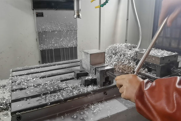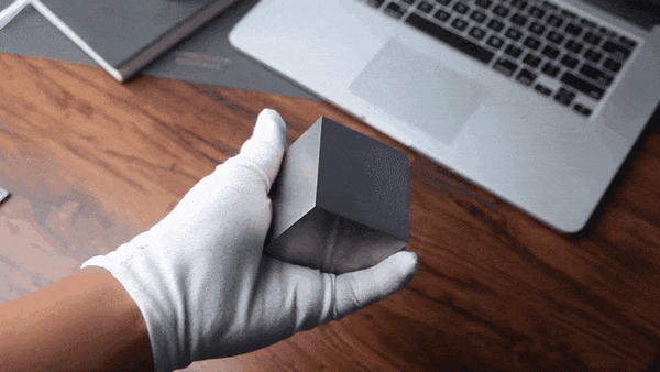 We used a precision machining process to get a cube. A large black of titanium was carefully worked using a CNC. Each cube was ground by hand for a perfect brushed finish. This results in the most perfect finish you can imagine. Here is a video of the process: